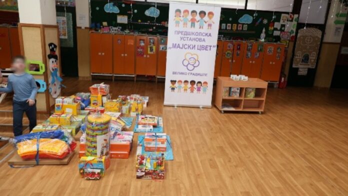Predsednik opštine Dragan Milić obišao je juče sa saradnicima Predškolsku ustanovu „Majski cvet“ i Dom zdravlja u Velikom Gradište i uručio pakete „Playmobil“ igračaka.