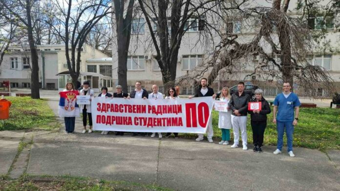Deo zdravstvenih radnika danas je u dvorištu Opšte bolnice u Požarevcu, šesnaestominutnom tišinom, još jednom odao poštu nastradalima u Novom Sadu.